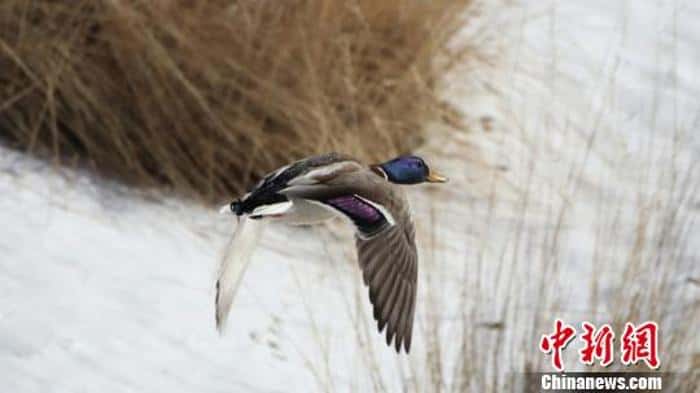 1月中旬,甘肃张掖市肃南裕固族自治县皇城草原内,当地牧民在冬日的草原上发现了绿头野鸭。据了解,随着环境治理,祁连山生态保护力度不断加大,自然生态恢复平衡,位于祁连山北麓的皇城草原上,白尾海雕、黑颈鹤等飞禽陆续亮相,各类野生动物的种类与数量均得到恢复性增长。