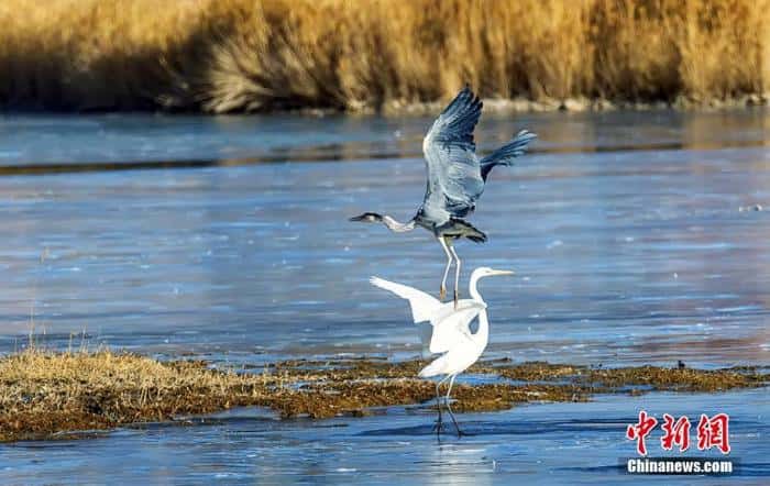两只苍鹭正在嬉戏玩耍 祝桂福摄