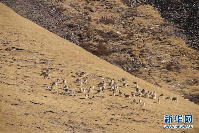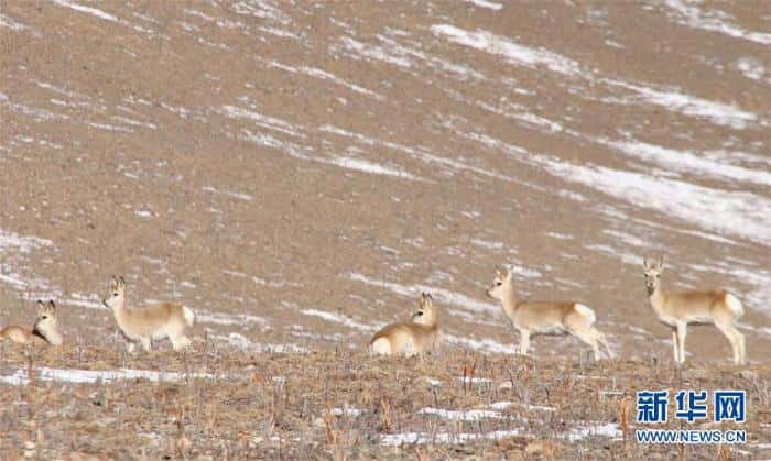 1月12日,一群藏原羚在行进途中 新华社发(李军摄)