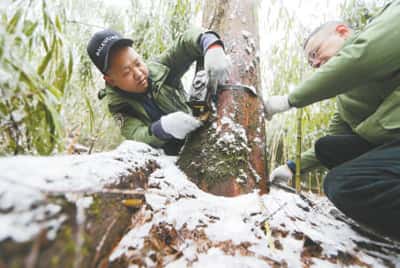 GPS定位仪、对讲机、望远镜、帐篷……深冬的清晨,护林员陈文才、赖杰收拾好进山设备,前往老君山深处,开始新一轮为期3天的巡山。