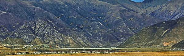 图为栖息在拉萨市墨竹工卡县唐家乡拉动村农田里的斑头雁 记者 唐斌摄