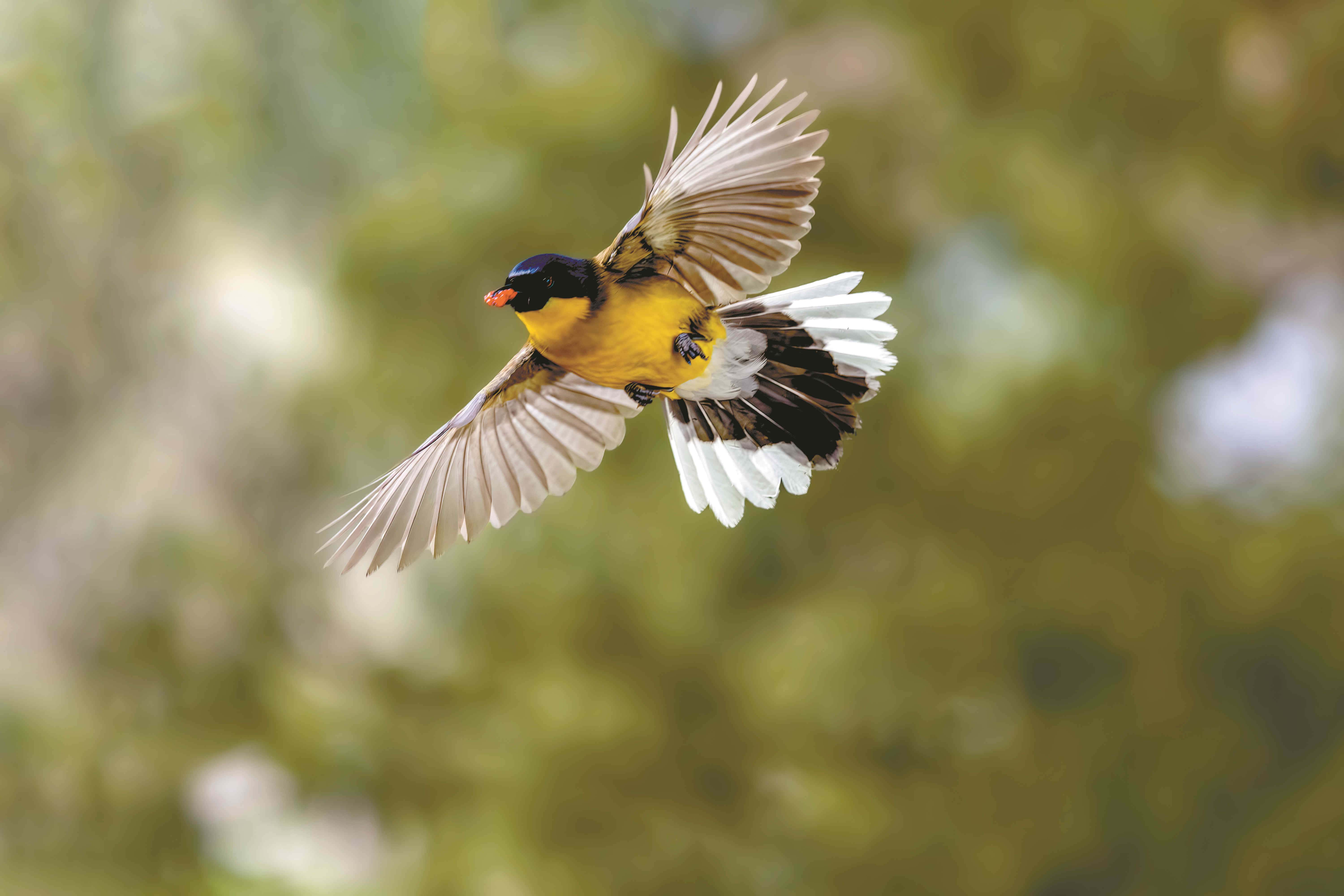 蓝冠噪鹛,属雀形目画眉科,体型不大却有不俗的颜值。其顶冠蓝灰色,具黑色的眼罩和鲜黄色的喉,上体褐色,尾端黑色,外侧尾羽具白色边缘,腹部及尾下覆羽皮黄色而渐变成白色,俨然是个天然“调色板”,被孩子们形象地称为“蓝帽黄领灰斗篷”。