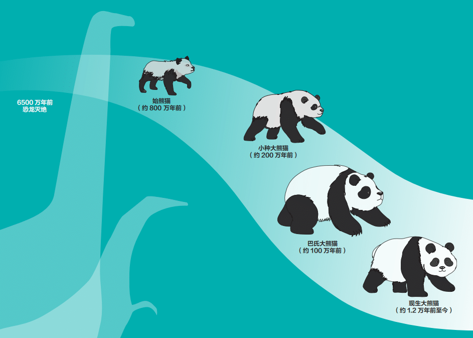 从始熊猫开始,大熊猫的体型演变是由小到大,再变小,历经800万年。