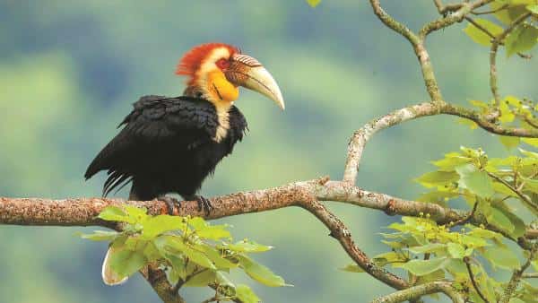 犀鸟是热带雨林旗舰物种,也是一片雨林生态健康的标志。区别于其他犀鸟,花冠皱盔犀鸟有美丽而性感的裸出喉囊,其他犀鸟则没有,这使得它们看起来很特别,也因此成为犀鸟中的“颜值担当”。