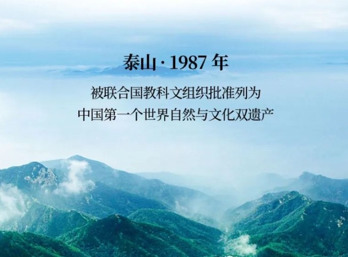 泰山,1987年被联合国教科文组织批准列为中国第一个世界自然与文化双遗产