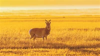 在青海省海北藏族自治州刚察县哈尔盖镇,“中国普氏原羚之乡”的牌子很醒目,要是幸运,站在公路边上就能看见湖滨草原上的精灵——普氏原羚。
