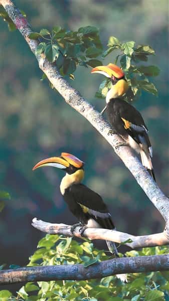 作为热带雨林标志性物种之一,双角犀鸟拥有特色鲜明的大嘴和艳丽的羽毛,这让它们看起来光彩照人,外形非常具有辨识度 龚强帮摄