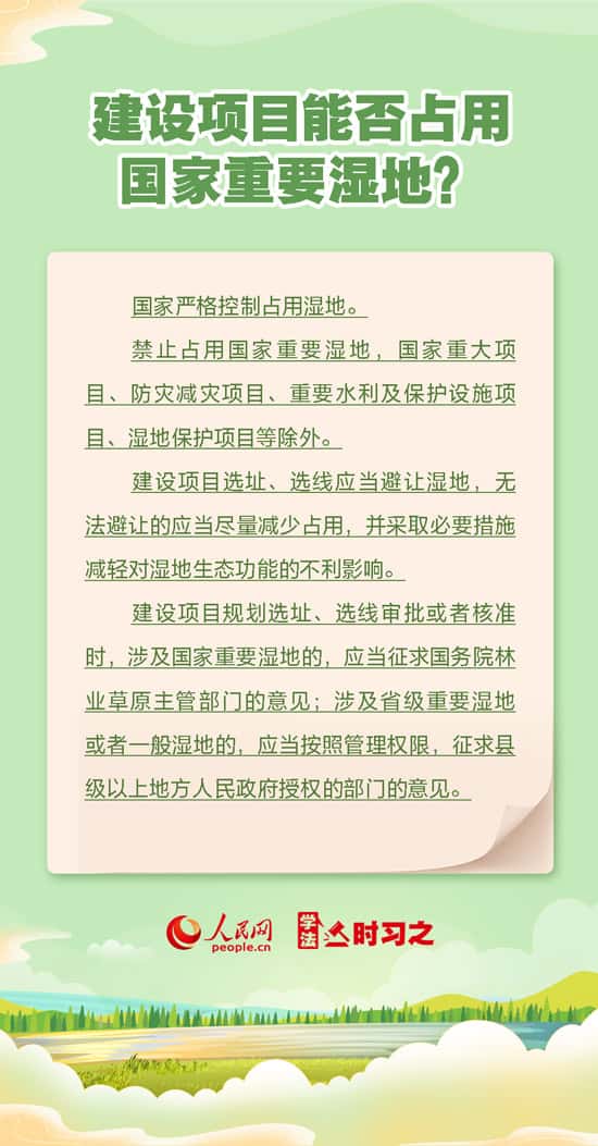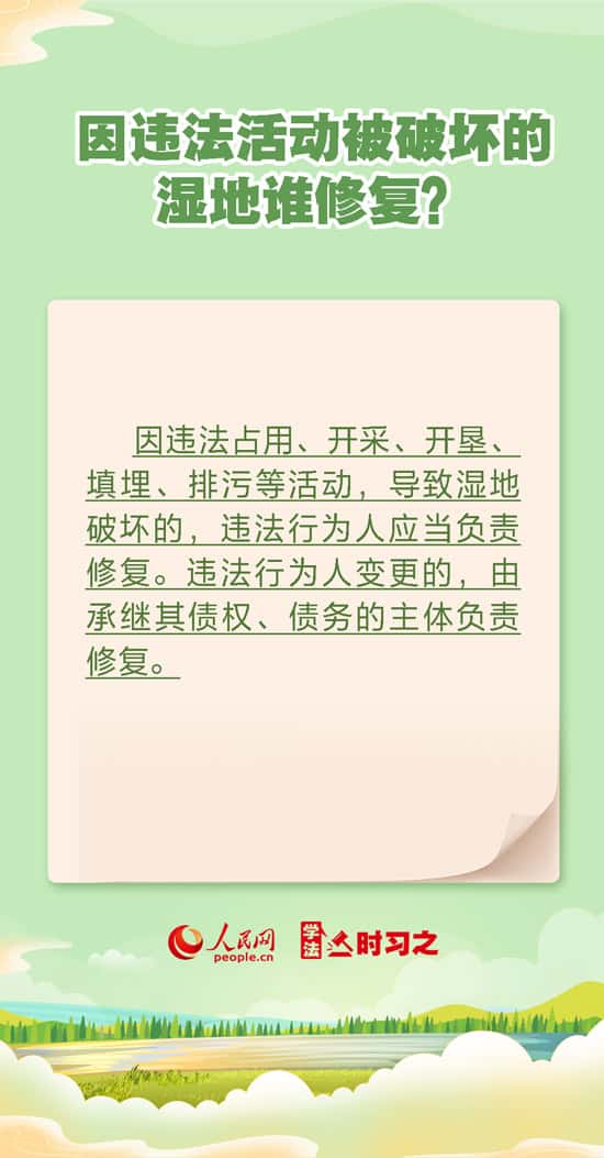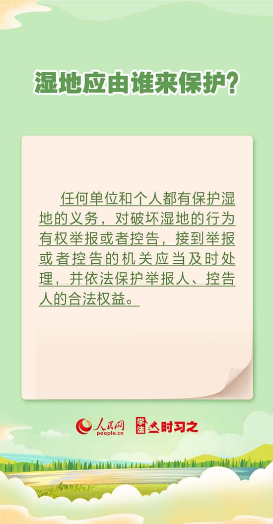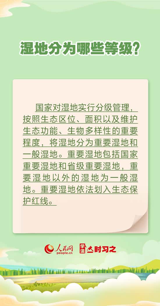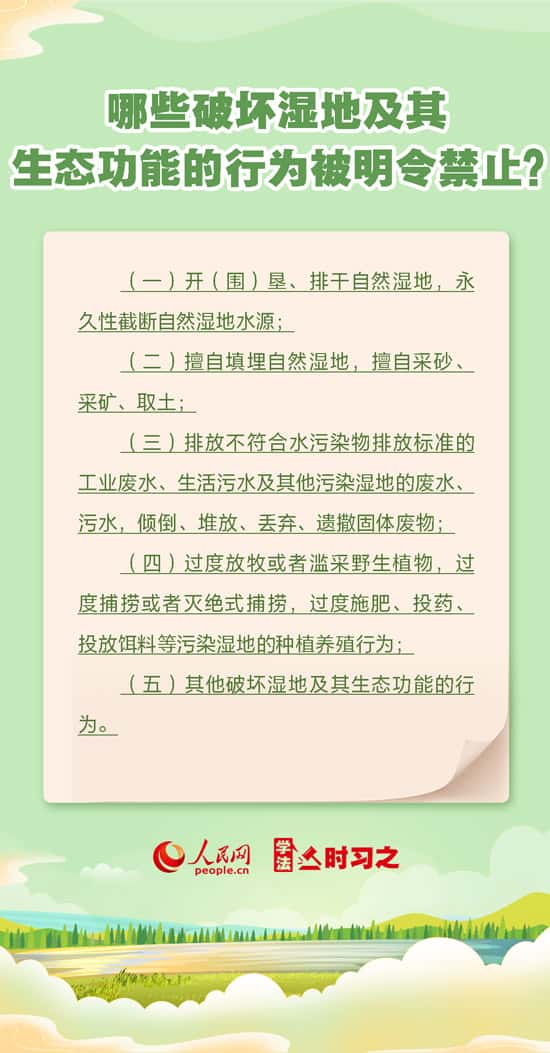 湿地,被誉为“地球之肾”,是极其珍贵的自然资源,也是重要的生态系统。2022年6月,我国首部专门保护湿地的法律——《中华人民共和国湿地保护法》施行,为更好地维护湿地生态功能及生物多样性,提供了坚实有力的法治保障。湿地应由谁来保护?哪些破坏湿地及其生态功能的行为被明令禁止?一起了解。