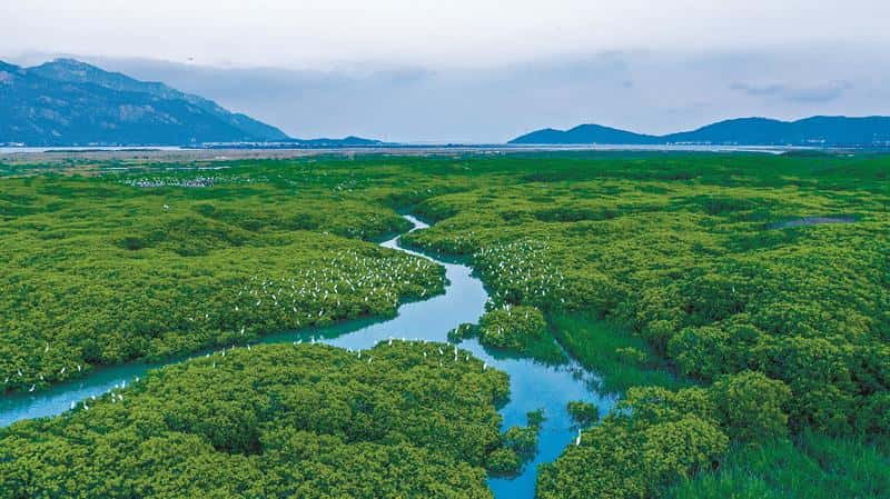 通过人工造林、生态修复,湛江红树林面积持续恢复,被国际湿地专家称为世界湿地恢复的成功范例。