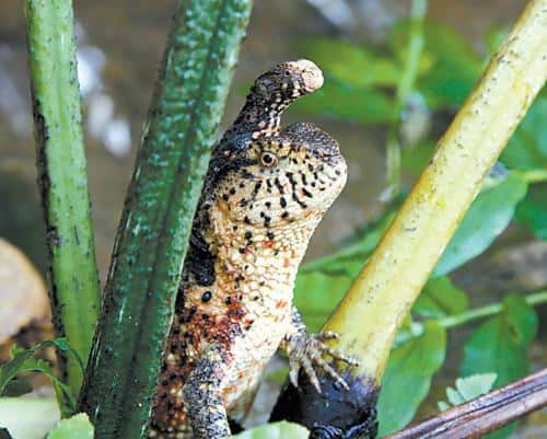 “现在正好是鳄蜥冬眠的季节,鳄蜥冬眠一般有两种形式,一种是在水流石缝中,另一种是在砂窝中。”何南介绍说。