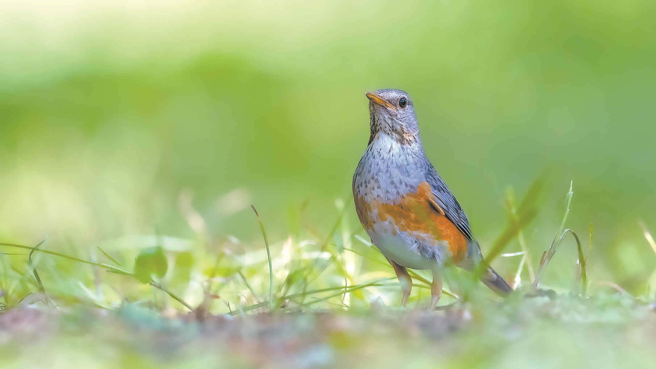 清晨的阳光透过林间树木的缝隙斑驳地散射下来,光影神秘迷离,去往拍摄掩体需要穿过一段长长的林间小路,抬头望去,树木和天空连在一起,似穹顶笼盖着原野,大朵的白云悠闲地飘过,草木的气息沁人心脾,野花似星星一样点缀林间草地。我一个人屏气潜伏在掩体里,一只灰背鸫好奇地打量着我,身着彩裙的蝴蝶在镜头前轻轻地试探着,一只硕大的蜘蛛忙碌地编织它的“天网”,林中安静极了,树的叹息、风的追逐、花的开放,轻传入耳……