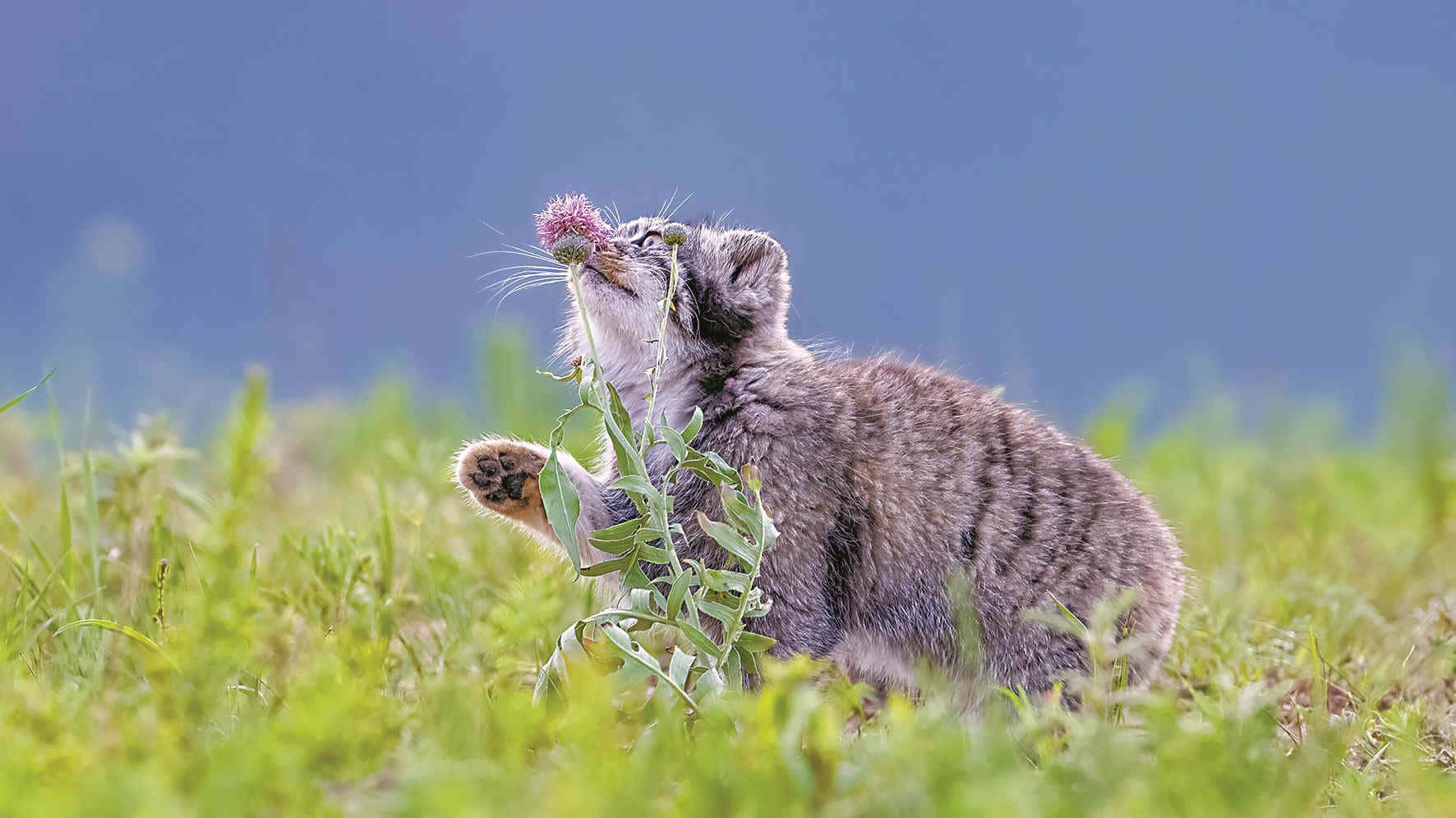 在贡格尔大地最美的季节,初见草原神秘精灵——兔狲。在群山环绕的山岗上,绿植繁茂,鲜花遍地,兔狲父母艰辛地哺育着出生不久的4个幼崽。孩子的天性总是顽劣的,兄弟四个常溜出洞穴,在洞口打闹推搡,在旷野中肆意奔跑,或者在花下发呆,它们灵动活泼、精力旺盛,眼睛里充满了对外面世界的好奇。