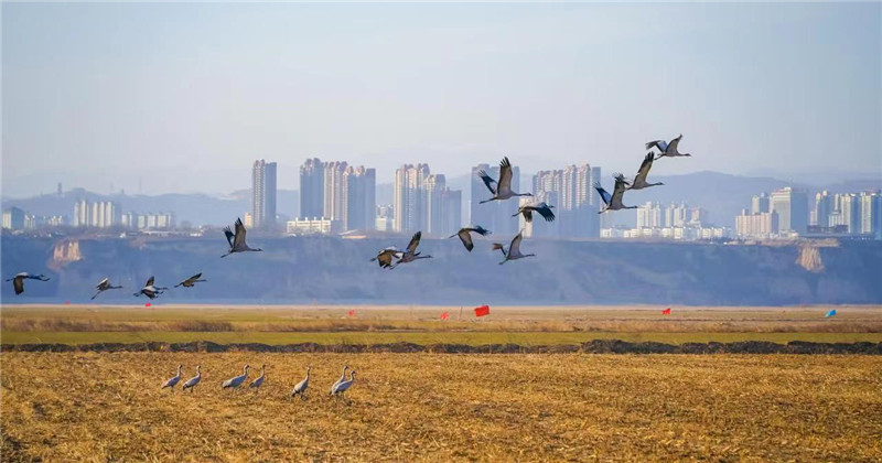 其次,湿地是黄河流域生态系统的有机组成部分。黄河流域湿地水资源丰富,气候湿润,滋养了千姿百态的动植物,形成独立的生态系统,同时,又与流域中分布的森林、草原、沙漠等生态系统一起构成了黄河流域整体的综合生态系统。位于河南省的三门峡库区湿地,目前生活其中的动物有450种、植物有1121种,其中黑鹳、大鸨、白头鹤、中华秋沙鸭属于国家Ⅰ级保护动物。这里还是大天鹅的理想家园,经过多年生态保护的实践,成果已逐渐显现,在此越冬的大天鹅数量从20世纪90年代的几十只、几百只,已增加到现在的上万只。