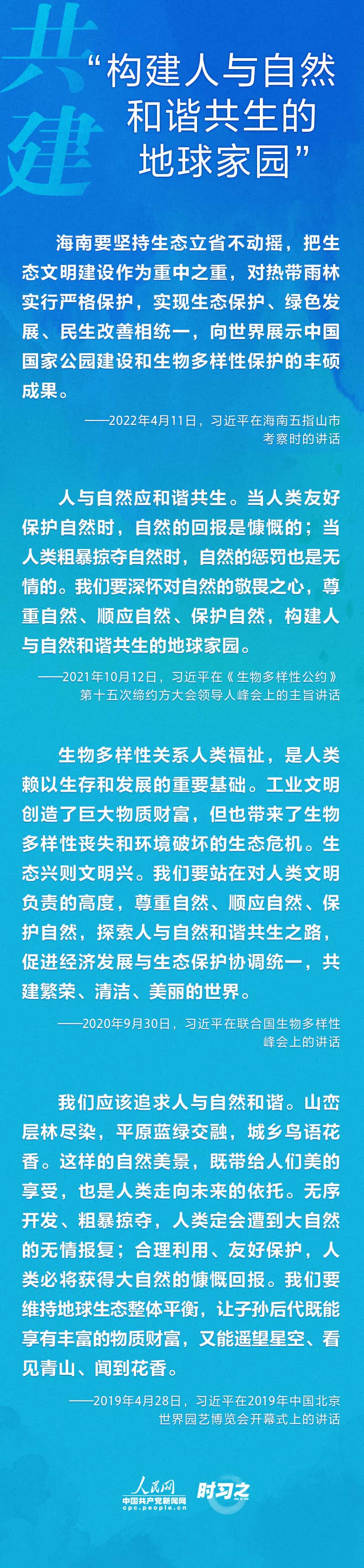 “保护生物多样性有助于维护地球家园,促进人类可持续发展。”“让我们携起手来,秉持生态文明理念,站在为子孙后代负责的高度,共同构建地球生命共同体,共同建设清洁美丽的世界!”2021年10月12日,习近平主席以视频方式出席在云南昆明举行的《生物多样性公约》第十五次缔约方大会领导人峰会并发表主旨讲话时强调。