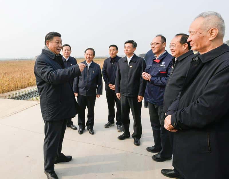 10月22日下午,中共中央总书记、国家主席、中央军委主席习近平在山东省济南市主持召开深入推动黄河流域生态保护和高质量发展座谈会并发表重要讲话。这是座谈会前,习近平21日上午在东营市黄河三角洲农业高新技术产业示范区考察。新华社记者 谢环驰 摄