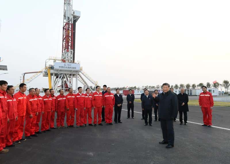 离开研究院,习近平来到位于东营市莱州湾的胜利油田莱113区块,了解二氧化碳捕集、利用与封存技术研发应用情况。他登上二层钻井平台,察看钻井自动化设备,走进操作室,同正在作业的工人亲切交流。今年是胜利油田发现60周年。习近平代表党中央向为我国能源事业作出贡献的石油工作者们表示崇高敬意。习近平叮嘱大家继承和发扬老一辈石油人的革命精神和优良传统,始终保持石油人的红色底蕴和战斗情怀,为社会主义现代化建设事业作出更大贡献。