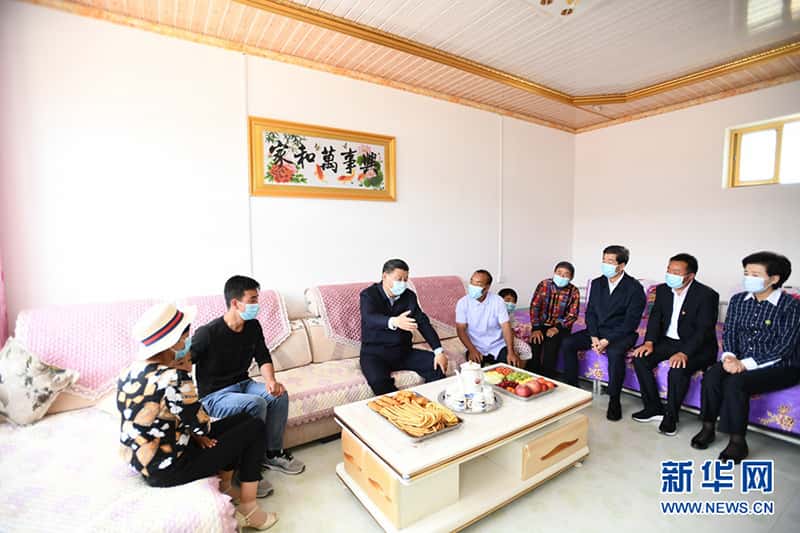 6月8日至10日,中共中央总书记、国家主席、中央军委主席习近平在宁夏考察。这是6月8日下午,习近平在吴忠市红寺堡区红寺堡镇弘德村,同回族村民刘克瑞一家亲切交流。 新华社记者 谢环驰 摄