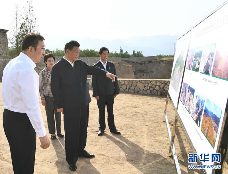 6月8日至10日,中共中央总书记、国家主席、中央军委主席习近平在宁夏考察。这是6月9日下午,习近平在银川市西夏区贺兰山东麓,听取贺兰山生态保护和环境综合整治情况汇报。 新华社记者 谢环驰 摄